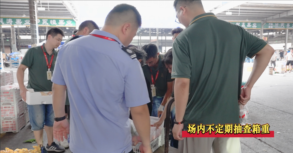 第二关是“检查”关。杭州地利果品市场在货物入场环节加强了抽检力度,重点核查包装材质、重量是否符合《管理办法》,对疑似违规包装开箱查验,坚决将不符合标准的果品挡在市场之外。同时提高了场内抽检的频次,对在售果品包装进行复核,确保入场后无“变通”增重行为。